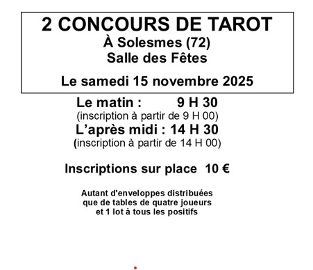 Vous êtes ici : Accueil > Concours de tarot à Solesmes : 15 novembre 2025